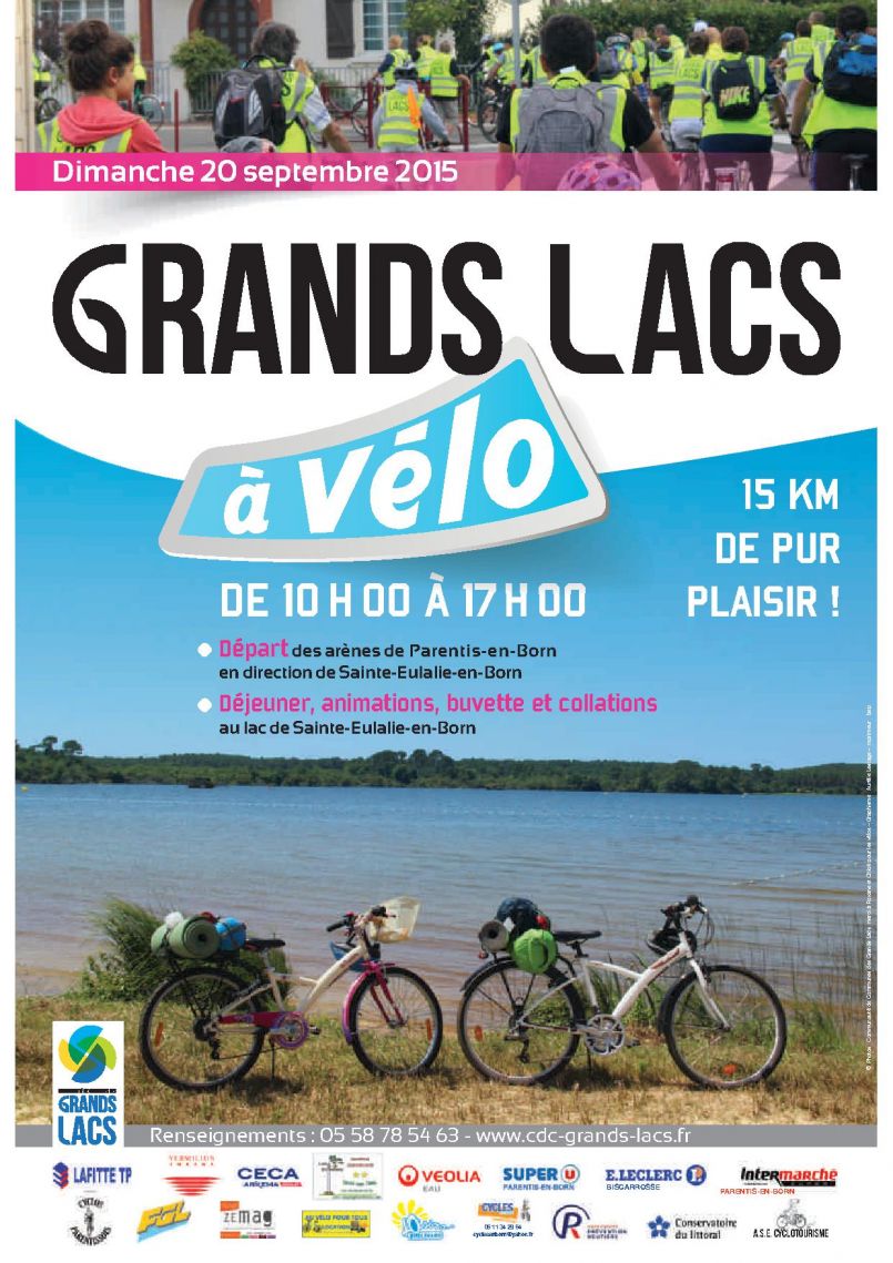 Dimanche 20 septembre journée 'Les Grands Lacs à vélo' de 10 à 17h organisée par la Communauté de communes. Départ des arènes de Parentis alors que déjeuner, animations et collations se feront sur place lac de Ste Eulalie en Born